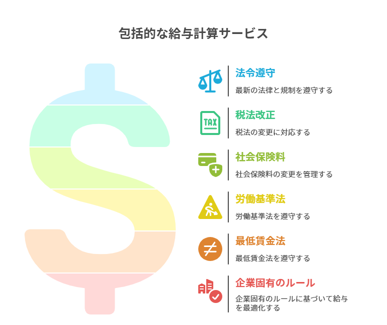 - 最新の法令に沿って適切に給与計算を行います。